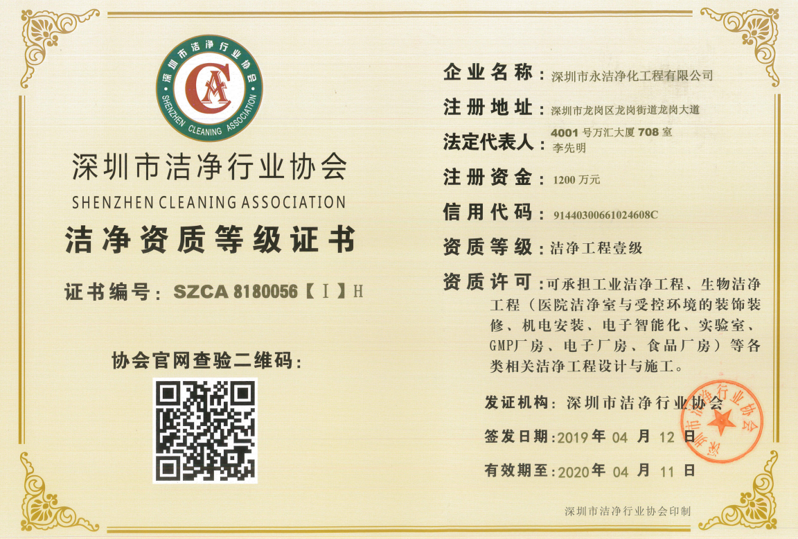 用五年時間,永潔凈化工程資質(zhì)由叁級升級為貳級,又用了五年時間永潔凈化工程資質(zhì)終于從貳級升為壹級,誠信、專注、服務(wù)、品質(zhì)!